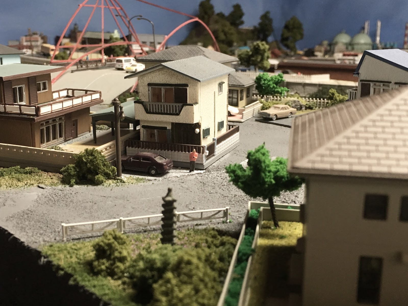 I had a little situation with the back pink foam pieces I put in. Due to rushing and not being careful or mechanical with the way I was putting the pieces in, I had some level differences in the foam areas. This wasn't a major issue, but it does make the buildings look like they are on a rather major tilt. So, I used it to my advantage like I used the multiple levels in the Shizuka section - to add some interest.